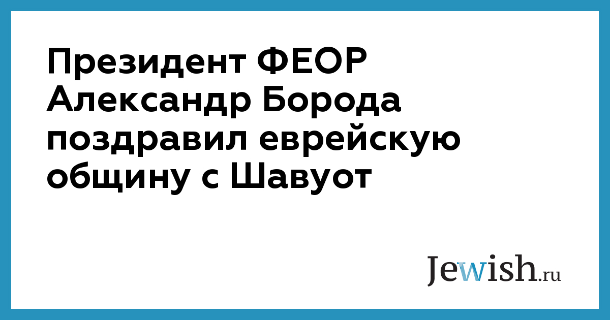 Президент ФЕОР Александр Борода поздравил еврейскую общину с Шавуот