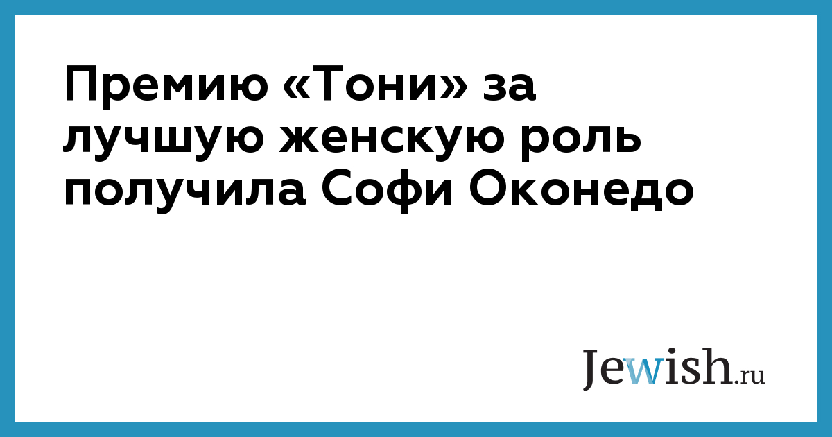 Премию «Тони» за лучшую женскую роль получила Софи Оконедо