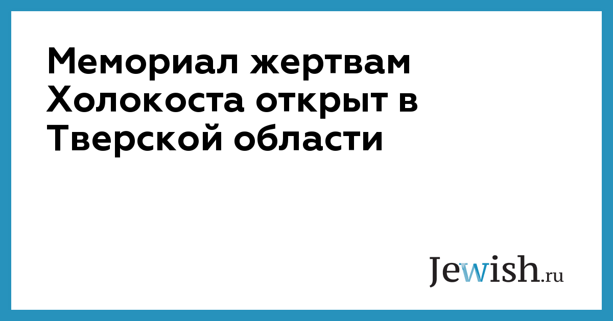 Мемориал жертвам Холокоста открыт в Тверской области