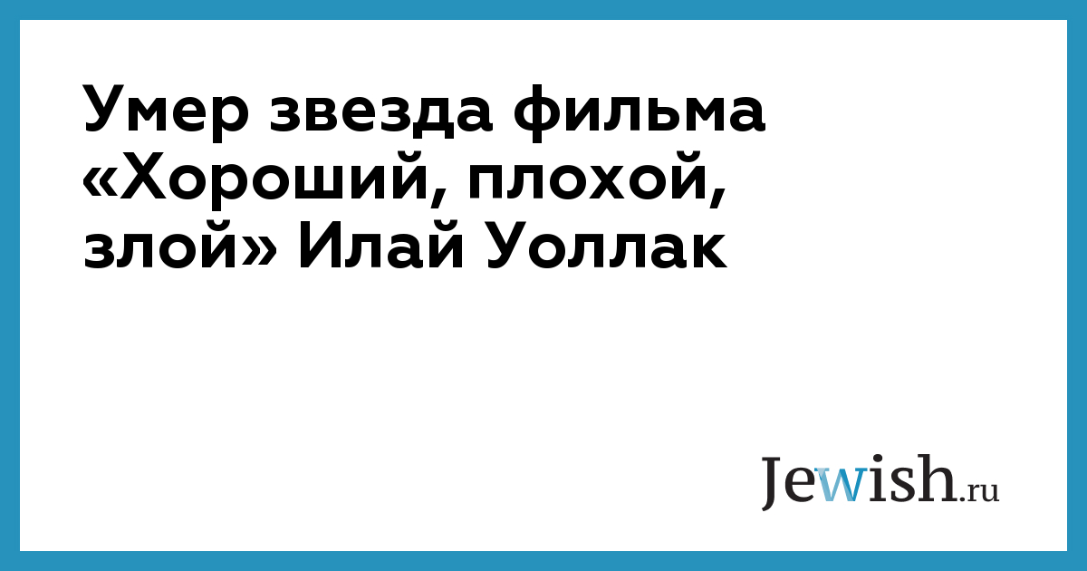 Умер звезда фильма «Хороший, плохой, злой» Илай Уоллак