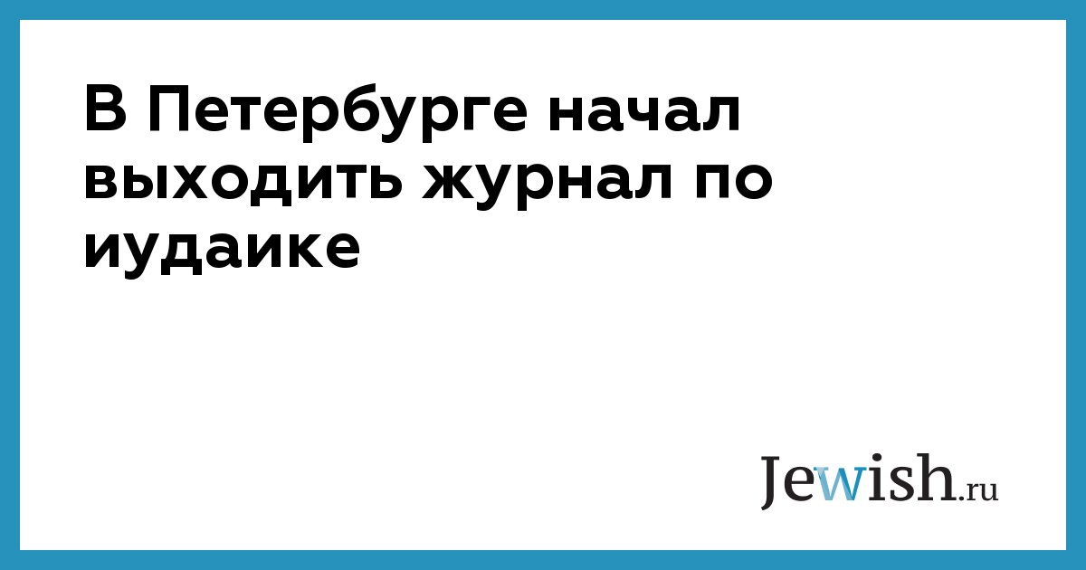 В Петербурге начал выходить журнал по иудаике