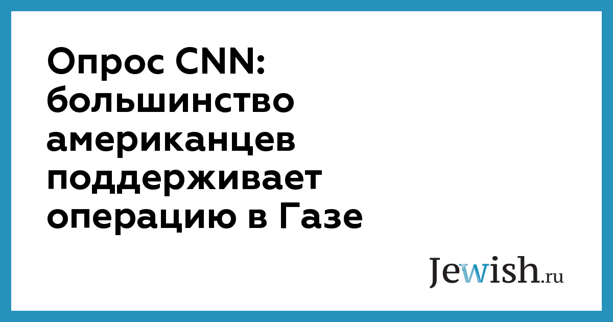 Согласно опросу, проведенному на днях телеканалом CNN, 57% американцев считают, что действия, предпринимаемые Израилем в отношении ХАМАСа, оправданны. 43% респондентов указали, что масштабы израильской военной операции в секторе Газа адекватны действиям палестнинской террористической группировки. 40% сочли ответную реакцию Израиля чрезмерной.