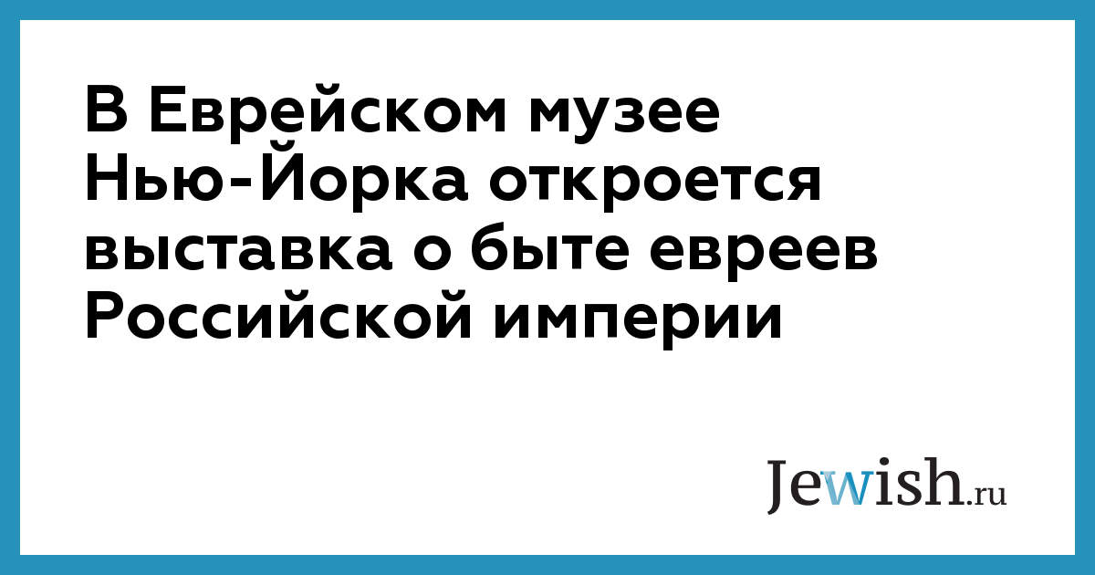 В Еврейском музее Нью-Йорка откроется выставка о быте евреев Российской империи