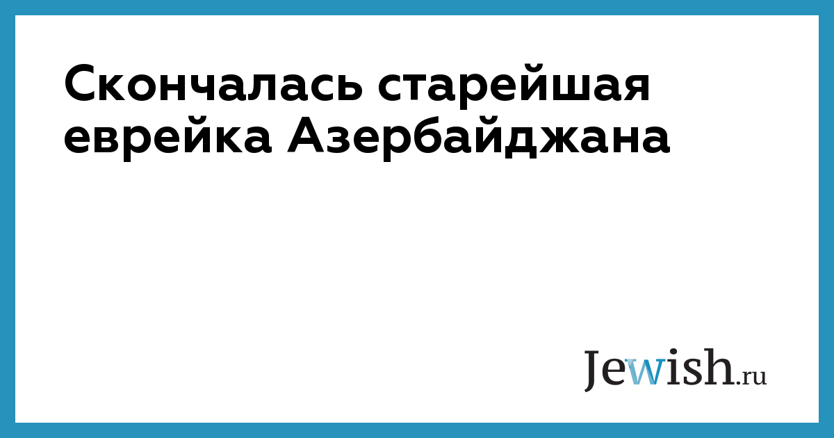 Скончалась старейшая еврейка Азербайджана