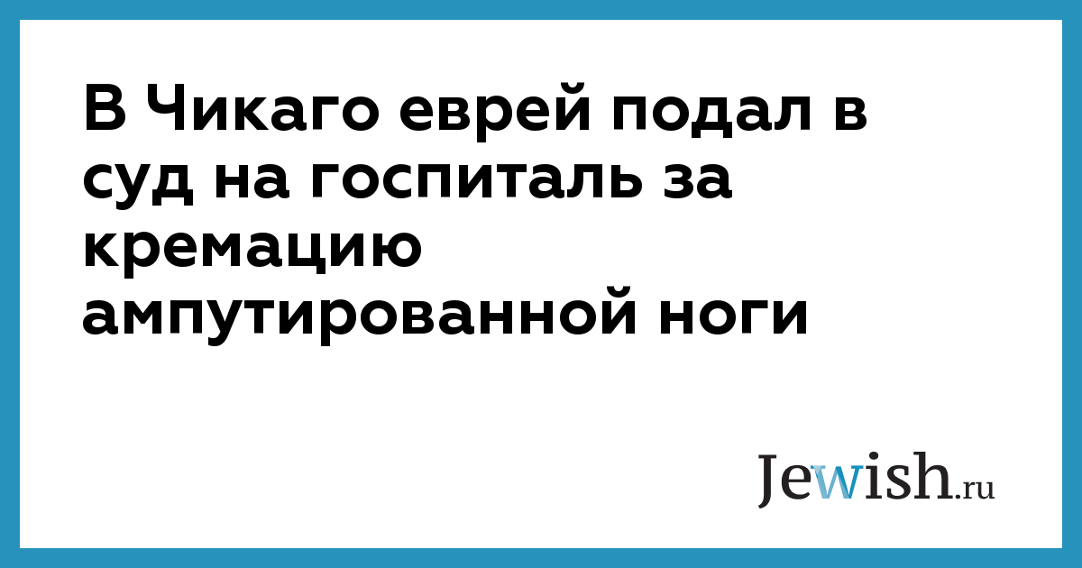 В Чикаго еврей подал в суд на госпиталь за кремацию ампутированной ноги