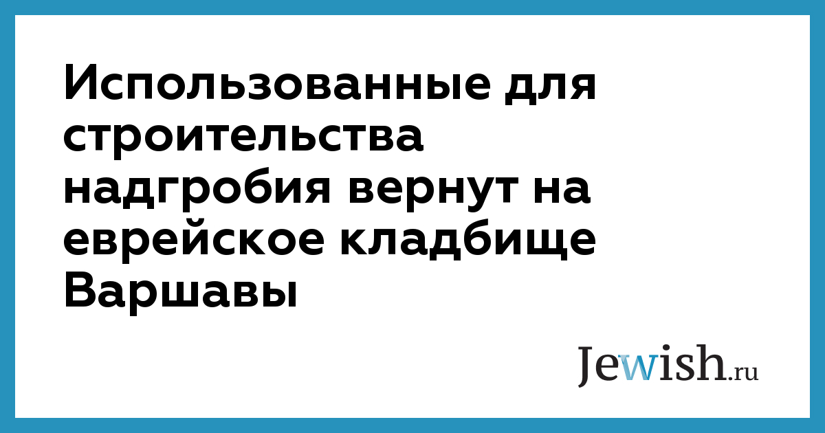 Использованные для строительства надгробия вернут на еврейское кладбище Варшавы