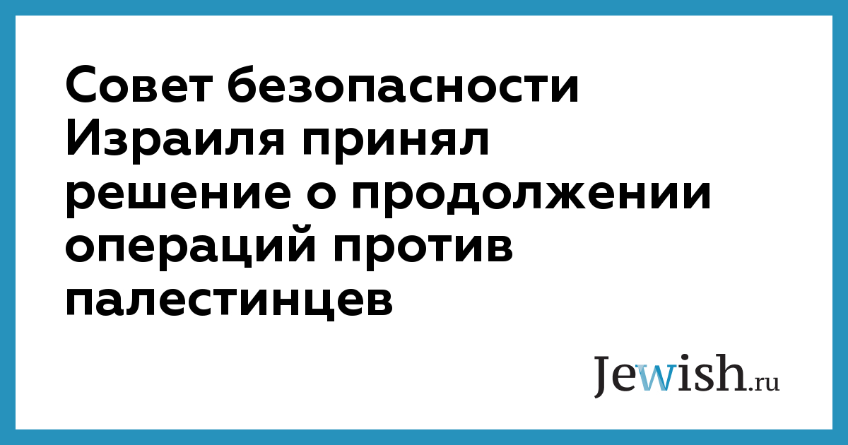 Совет безопасности Израиля принял решение о продолжении операций против палестинцев