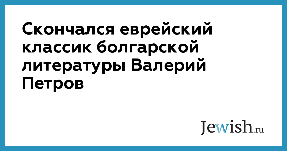 Скончался еврейский классик болгарской литературы Валерий Петров