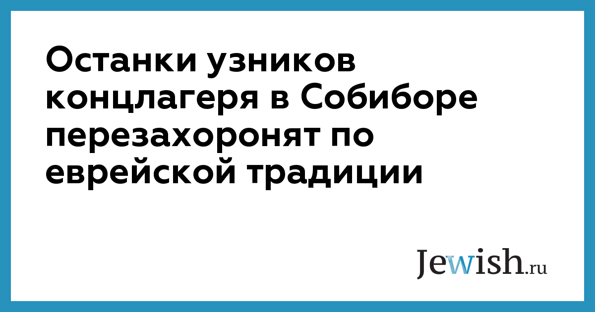 22 октября на территории нацистского концлагеря Собибор состоится церемония перезахоронения тел его узников в соответствии с еврейской традицией. Тела жертв Холокоста в Собиборе были похоронены в общей могиле и останки со временем обнажились. В настоящее время на территории бывшего лагеря можно увидеть многочисленные куски человеческих костей. Эти останки планируется собрать для подобающего погребения.