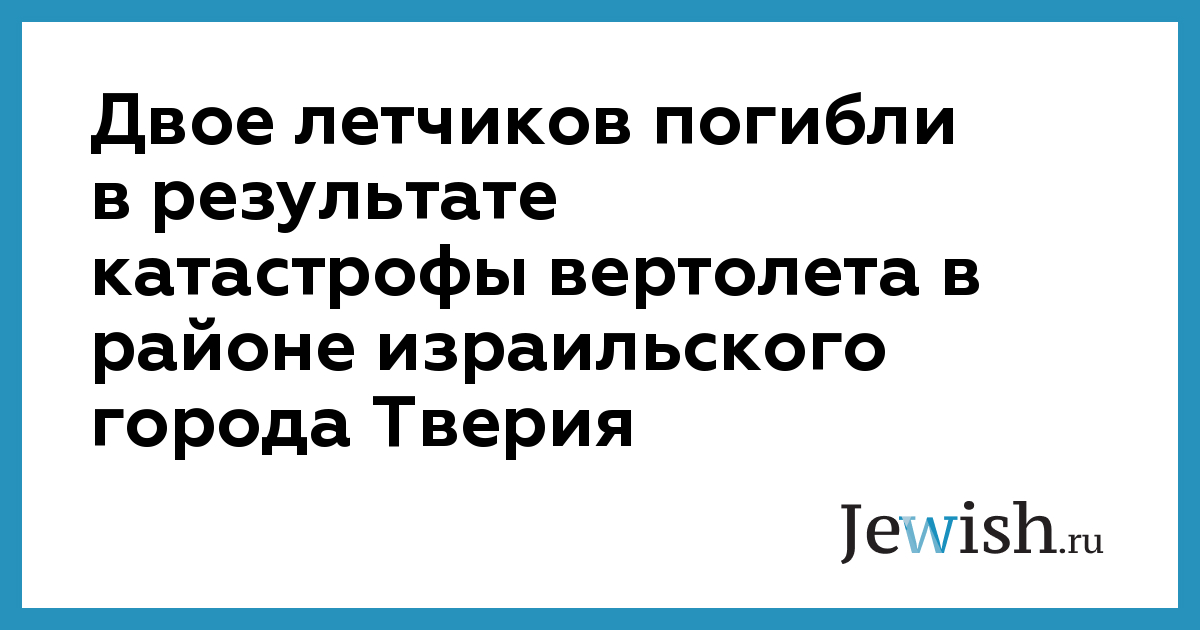 Двое летчиков погибли в результате катастрофы вертолета в районе израильского города Тверия