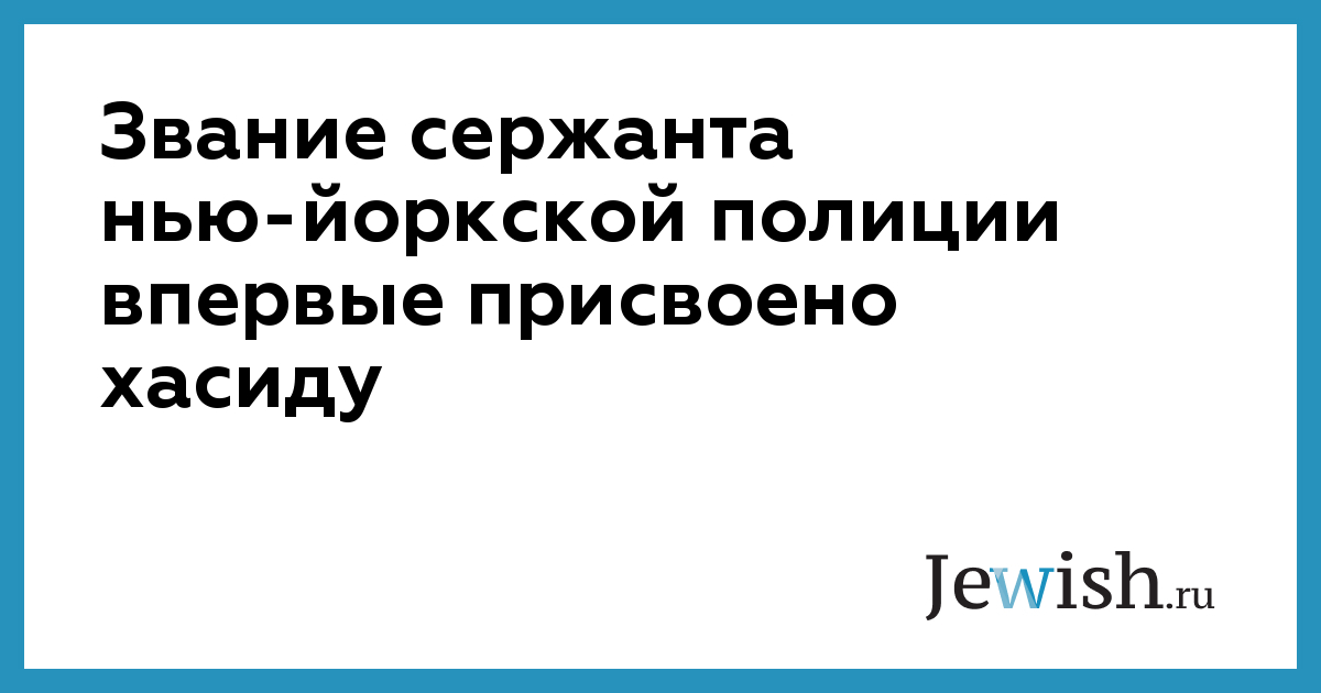 Звание сержанта нью-йоркской полиции впервые присвоено хасиду