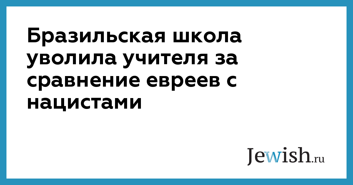 Бразильская школа уволила учителя за сравнение евреев с нацистами