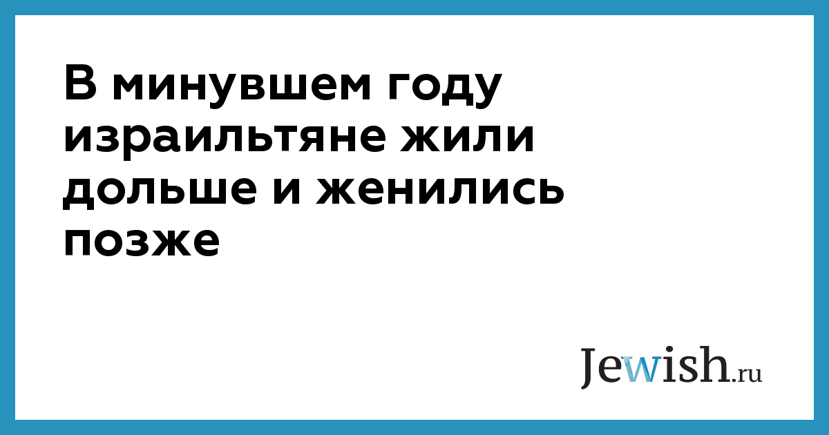 Центральное бюро статистики сообщило, что общее соотношение мужчин и женщин в Израиле составляет 982 к 1000. Однако в возрастной группе до 30 лет мужчин в стране больше, чем женщин. Согласно данным бюро, возраст вступления в брак у израильтян становится выше с каждым годом. В настоящее время среди евреев в возрастной группе 25-29 лет 63,3% мужчин и 46% женщин ни разу не состояли в браке. Десять лет назад количество неженатых мужчин этого возраста в стране составляло 54%, незамужних женщин – 33,3%.