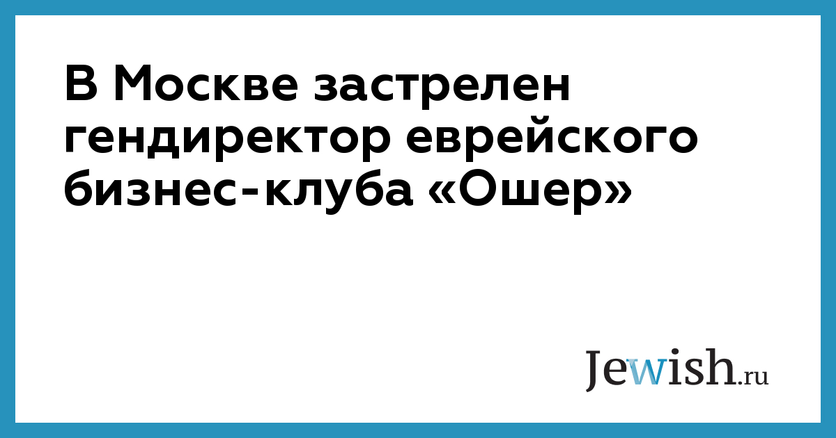 В Москве застрелен гендиректор еврейского бизнес-клуба «Ошер»
