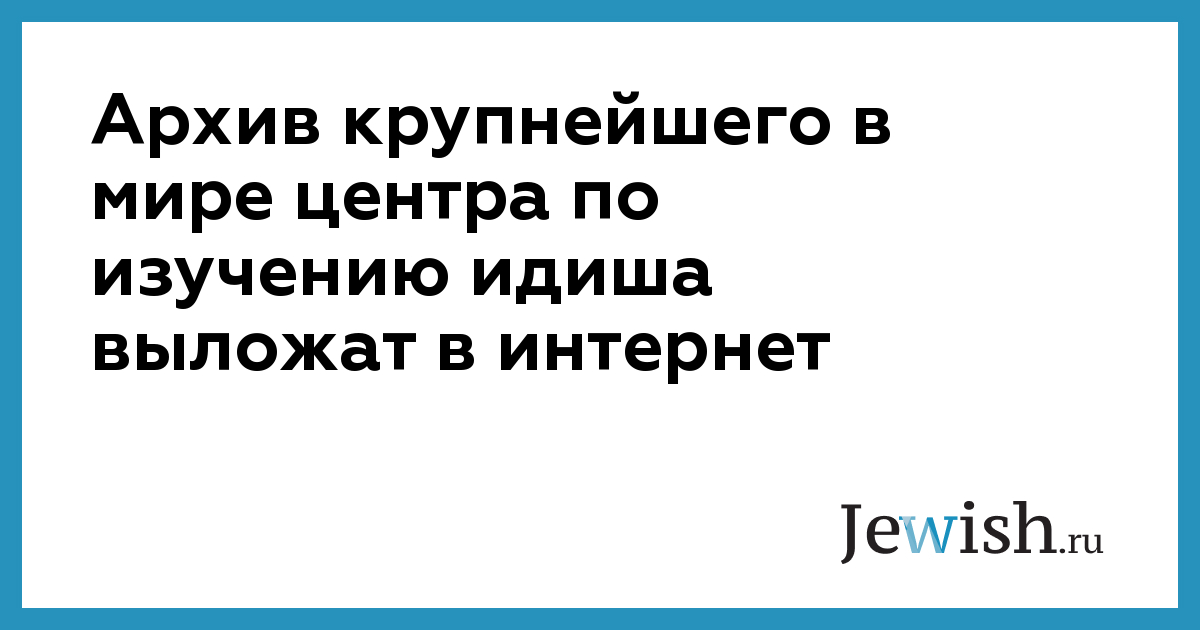 Архив крупнейшего в мире центра по изучению идиша выложат в интернет