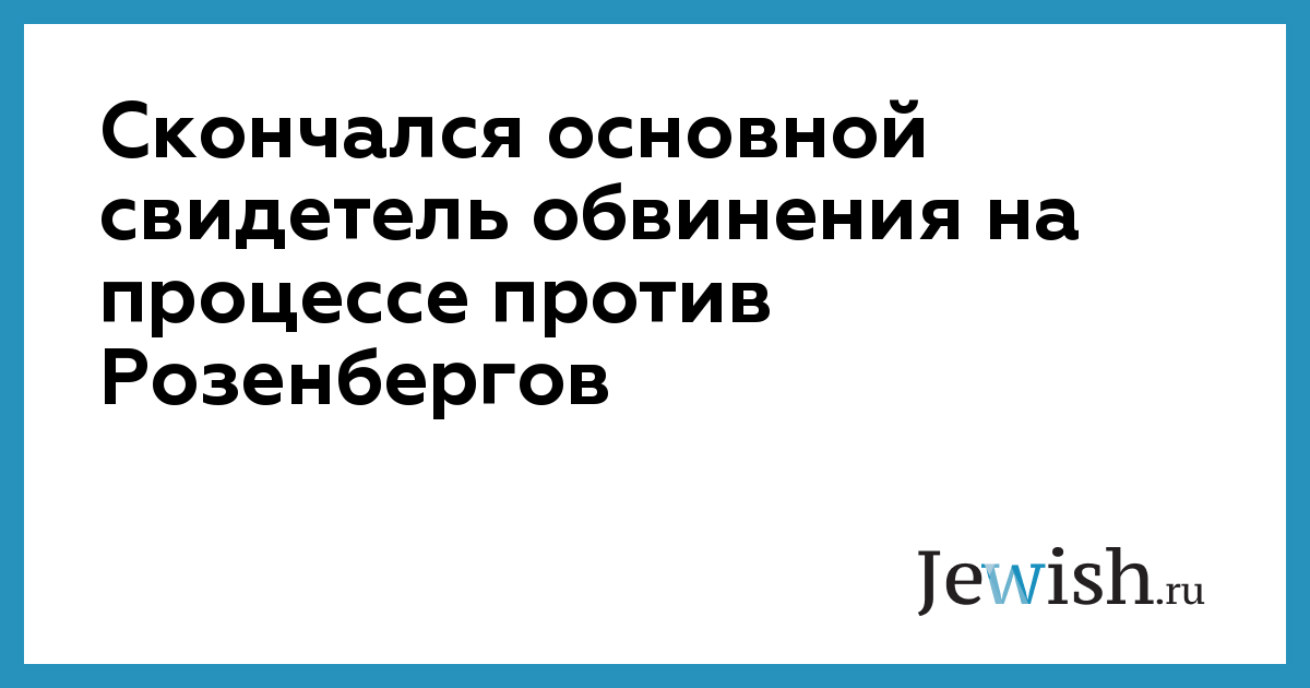 Скончался основной свидетель обвинения на процессе против Розенбергов