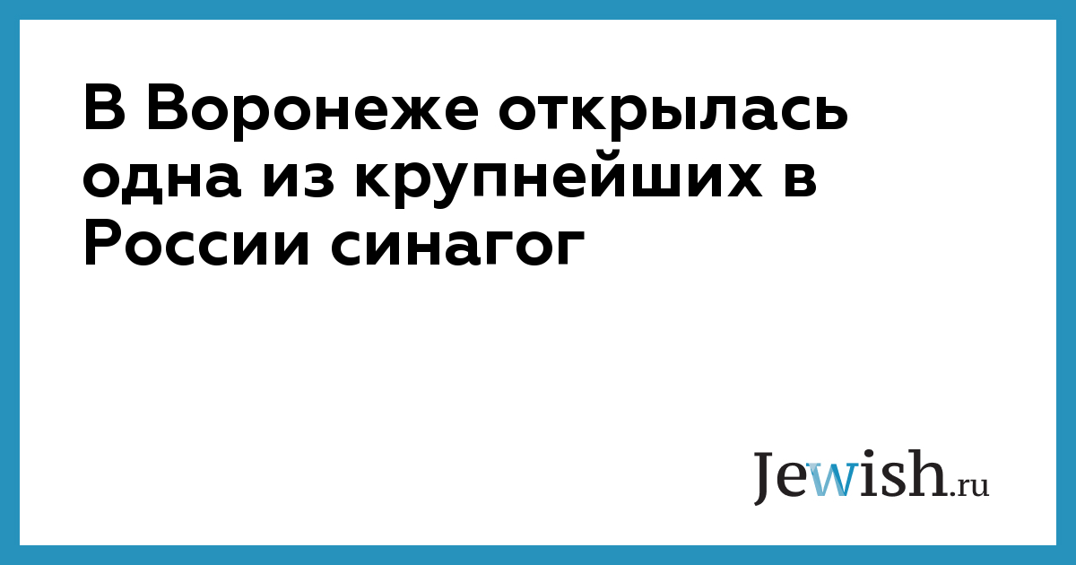 19 октября в Воронеже открылась после реконструкции главная синагога города. Здание в 1937 году было закрыто и оставалось заброшенным несколько десятков лет. В 2010 году воронежская еврейская община при поддержке Российского еврейского конгресса приступила к реконструкции строения.