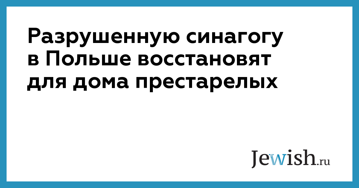 Разрушенную синагогу в Польше восстановят для дома престарелых