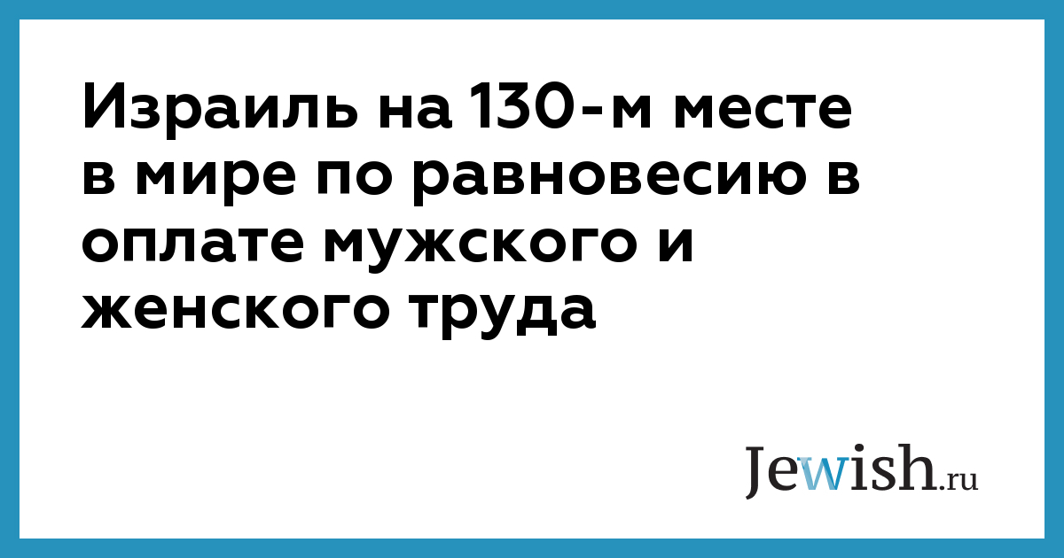 Израиль на 130-м месте в мире по равновесию в оплате мужского и женского труда