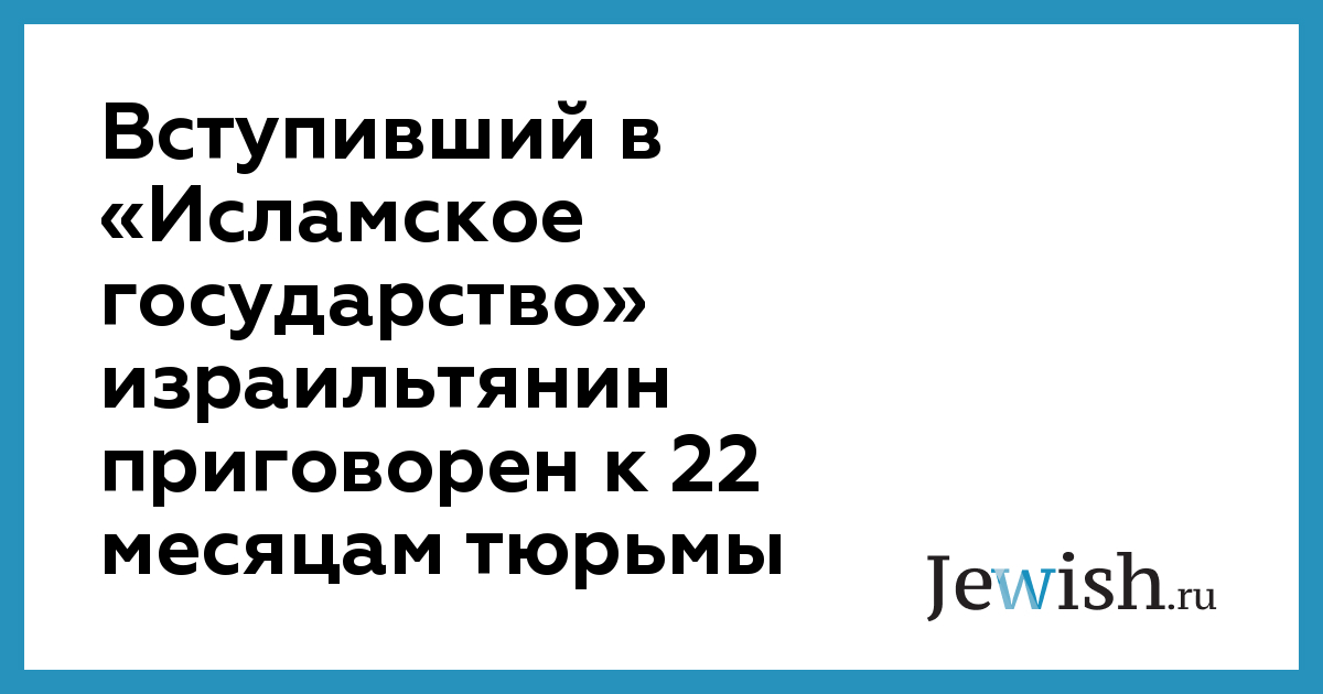 Сегодня утром суд Хайфы приговорил к 22 месяцам тюремного заключения 23-летнего Ахмада Шурбаджи. Гражданин Израиля, проживающий в арабском городе Умм-эль-Фахм, был отдан под суд по причине членства в террористической организации «Исламское государство». Шурбаджи вместе с тремя товарищами покинул Израиль в январе этого года, чтобы присоединиться к ИГ. После трех месяцев, проведенных в Сирии, израильтянин раскаялся в своем решении и связался с ШАБАКом с целью получить разрешение вернуться на родину. Шурбаджи был задержан по прилету в аэропорт имени Бен-Гуриона, сообщает