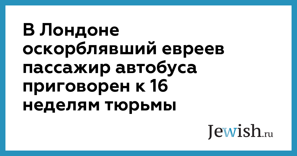 В Лондоне оскорблявший евреев пассажир автобуса приговорен к 16 неделям тюрьмы