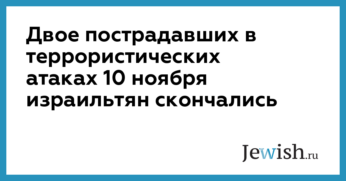 Два человека скончались от ранений, полученных в результате террористических атак в Тель-Авиве и Гуш-Эционе 10 ноября. 26-летняя жительница поселения Ткоа Далия Лемкус погибла на месте теракта в Гуш-Эционе, 20-летний солдат ЦАХАЛа Альмог Шилони умер в больнице «Тель ха-Шомер». Еще двое пострадавших остаются в больнице, состояние одного из них оценивается как тяжелое.