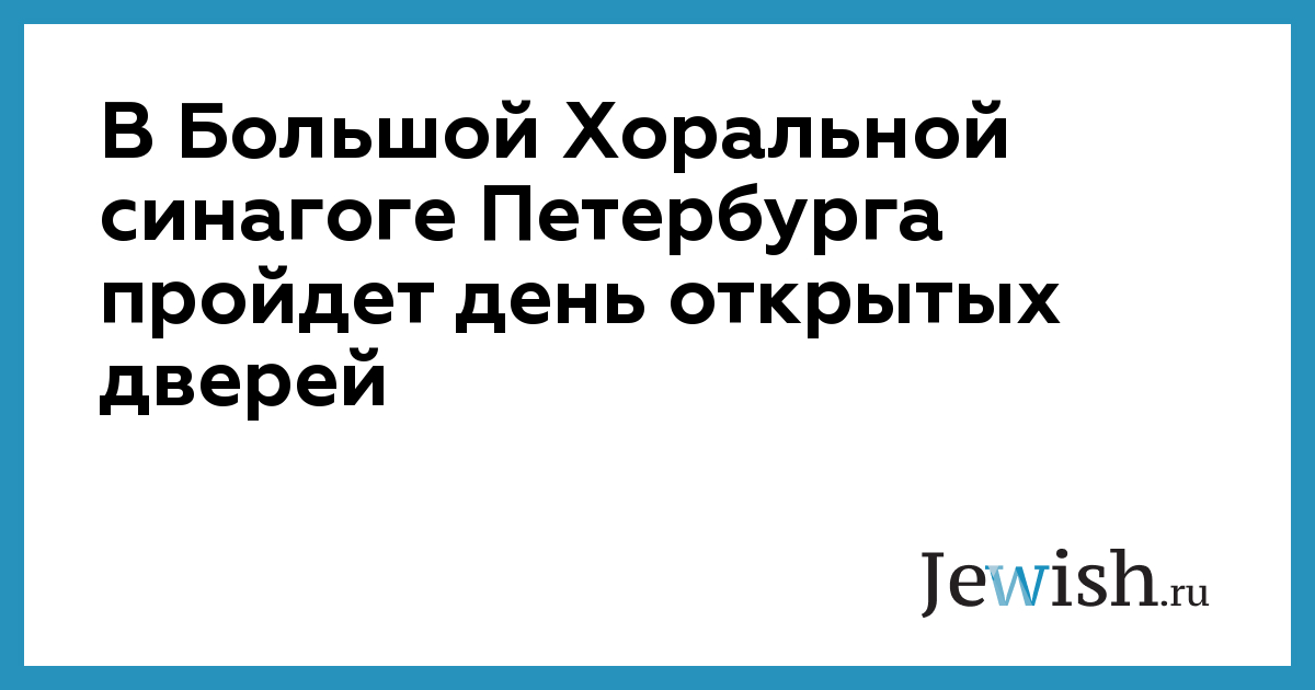 В Большой Хоральной синагоге Петербурга пройдет день открытых дверей