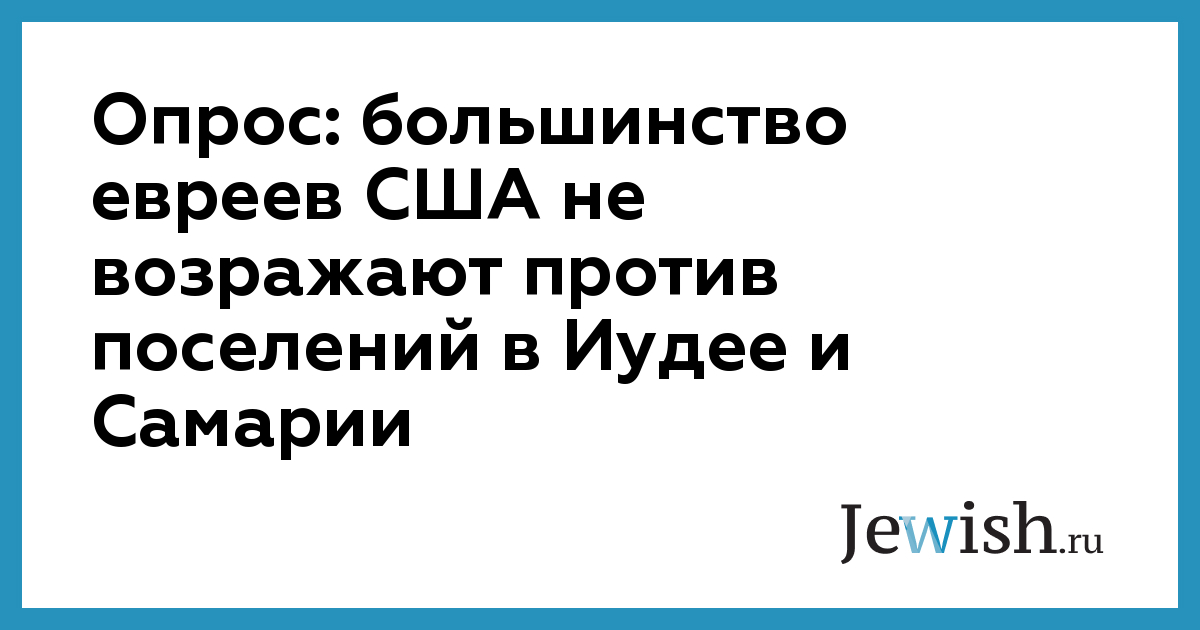 Опрос, проведенный среди евреев США показал, что еврейская община страны в целом не возражает против поселений или поддерживает их. 52% респондентов сообщили, что Израиль должен продолжать развитие уже существующих поселений, но не основывать новые. 20% сочли, что Израиль имеет право строить по всей территории Иудеи и Самарии. Только 28% опрошенных заявили, что Израиль должен полностью прекратить строительство на территориях.