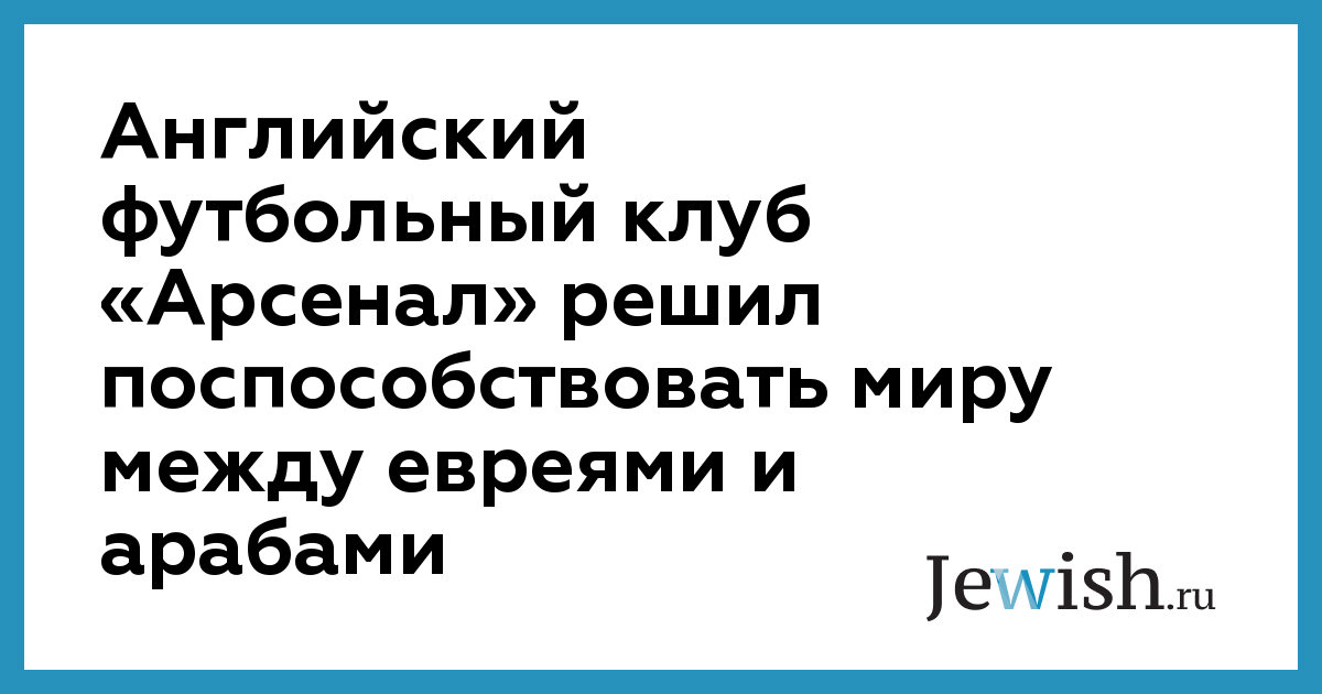 Английский футбольный клуб «Арсенал» решил поспособствовать миру между евреями и арабами
