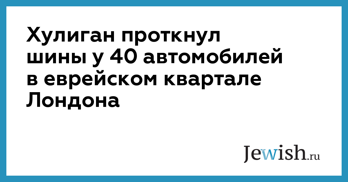 Хулиган проткнул шины у 40 автомобилей в еврейском квартале Лондона