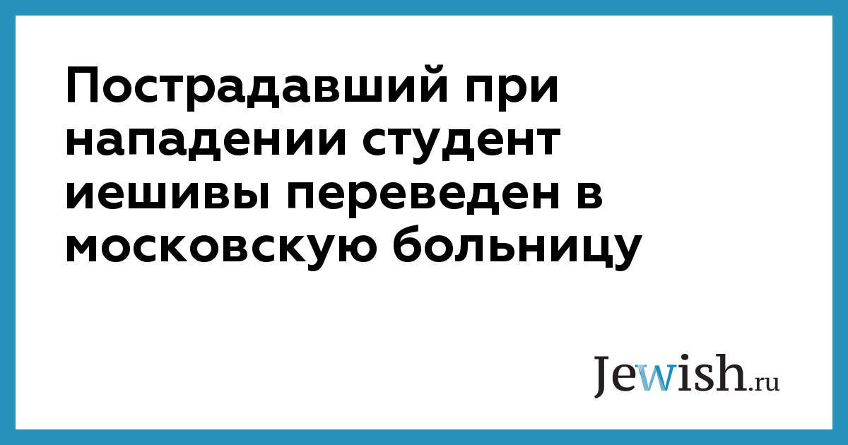 Пострадавший при нападении студент иешивы переведен в московскую больницу