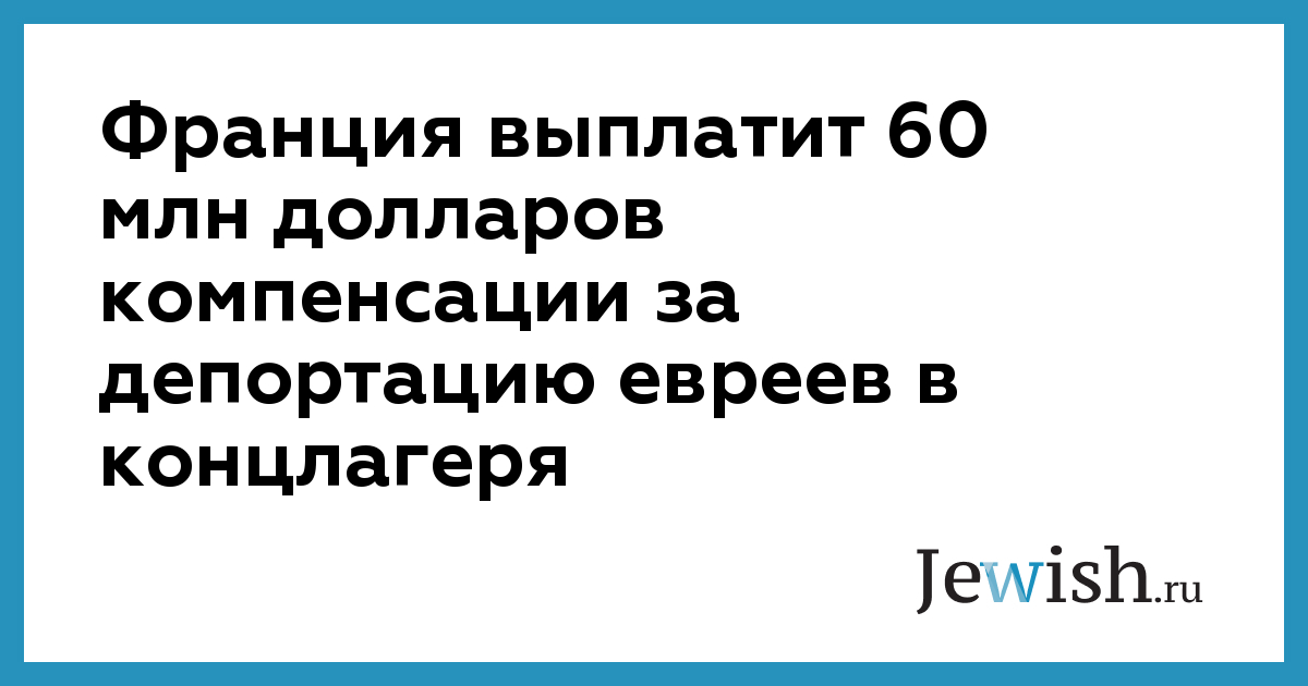 Официальный документ, подтверждающий соглашение о создании специального фонда, будет подписан в понедельник и вступит в силу после одобрения французским парламентом. Сообщается, что размер выплат бывшим узникам концлагерей составит до 100 тыс. долларов на человека, также несколько десятков тысяч долларов будет выплачено их супругам и детям.