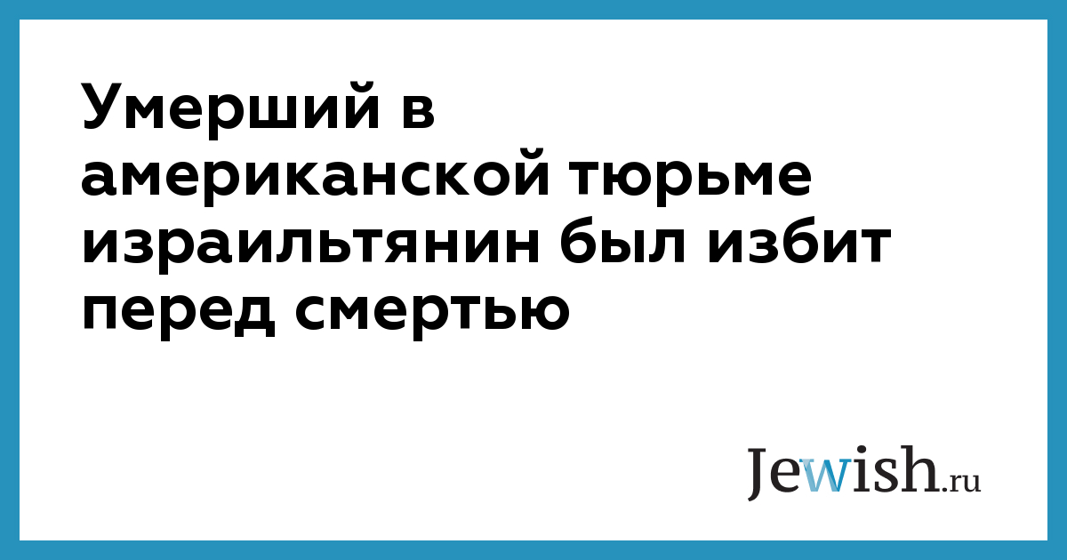 Умерший в американской тюрьме израильтянин был избит перед смертью