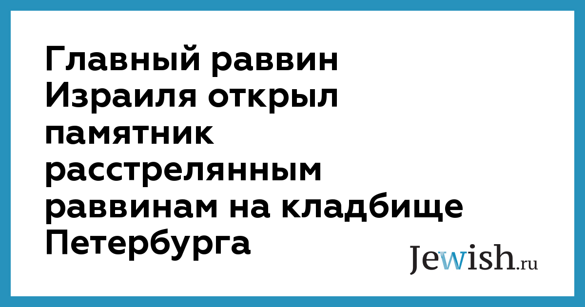Главный ашкеназский раввин Израиля Давид Лау принял участие в освящении памятника двенадцати раввинам, расстрелянным в Ленинграде в 1937-1938 годах. Мемориал на месте братской могилы был установлен на Левашовском кладбище Санкт-Петербурга в октябре этого года. Точное место захоронения раввинов определил петербургский раввин Ифрах Абрамов. «Я сумел получить доступ в архивы ФСБ. Там я нашел дело ребе Раяца, раввина Морозова и еще 10–15 хасидов, в том числе и дедушки главного раввина Петербурга М.-М. Певзнера, – рассказал раввин Абрамов. – Через архив ФСБ и мемориал "Память" удалось выяснить, что похоронены все они на Левашовской пустоши. Но где именно?