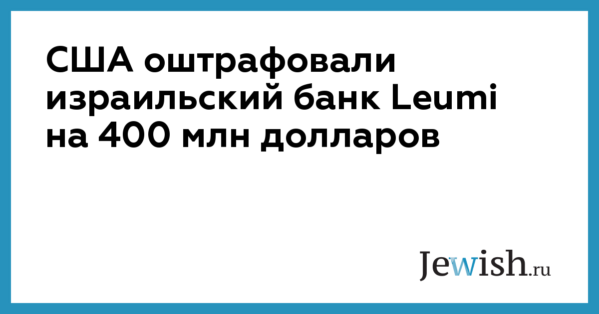 США оштрафовали израильский банк Leumi на 400 млн долларов