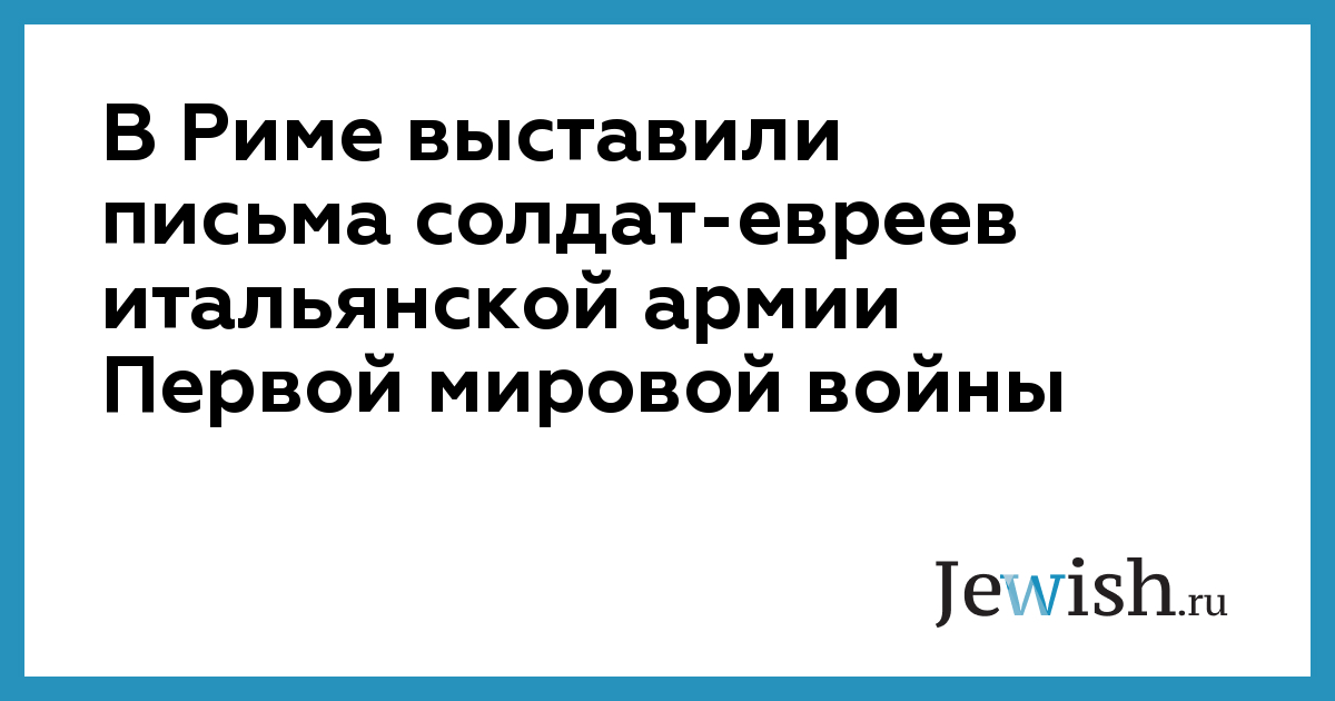 В Еврейском музее Рима открылась выставка евреев писем и открыток, написанных еврейскими солдатами итальянской армии в 1914-1918 годах. Экспозиция открылась между двумя важными юбилейными датами — 100-летней годовщиной начала Первой мировой войны и 70-летней годовщиной освобождения Освенцима. Хотя номинально выставка в римском музее связана лишь с первым из этих юбилеев, второй тоже имеет непосредственное отношение к авторам представленных на ней писем. Многие из еврейских солдат итальянской армии, переживших Первую мировую войну, затем погибли в Освенциме.
