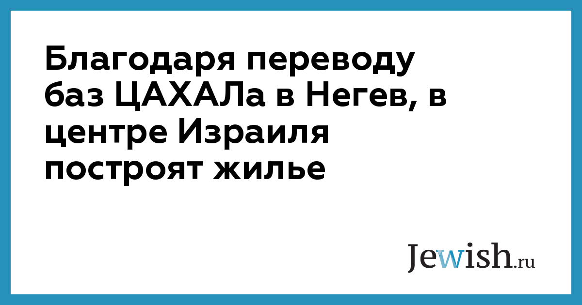 Благодаря переводу баз ЦАХАЛа в Негев, в центре Израиля построят жилье