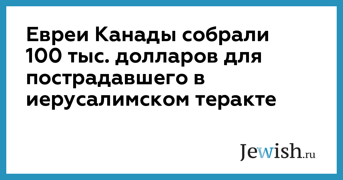 Евреи Канады собрали 100 тыс. долларов для пострадавшего в иерусалимском теракте