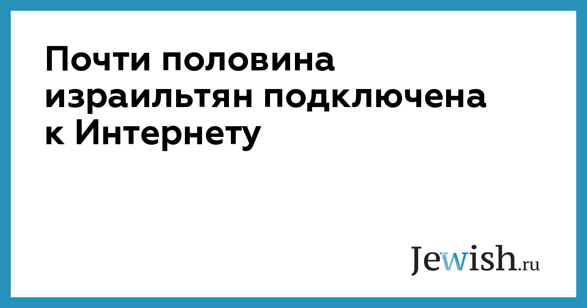 Исследования показало, что в Израиле к Интернету подключено 42 процента домов и квартир. То есть меньше чем за год количество израильских интернетчиков увеличилось почти в 2 раза — в июне прошлого года к Интернету было подключено только 29 процентов домов и квартир.