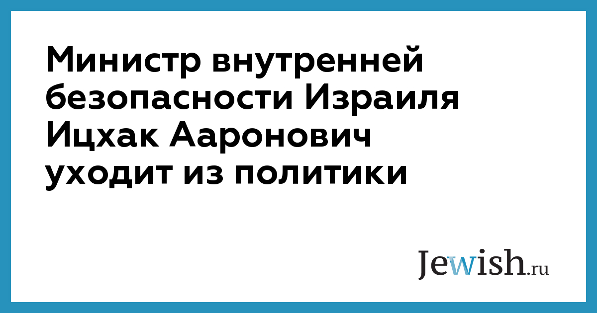 Министр внутренней безопасности Израиля Ицхак Ааронович уходит из политики
