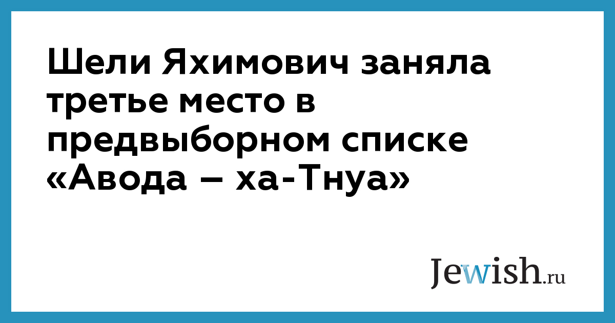 Шели Яхимович, глава партии «Авода» с 2011 по 2013 годы, заняла первое место на прошедших во вторник, 13 января, праймериз. Согласно