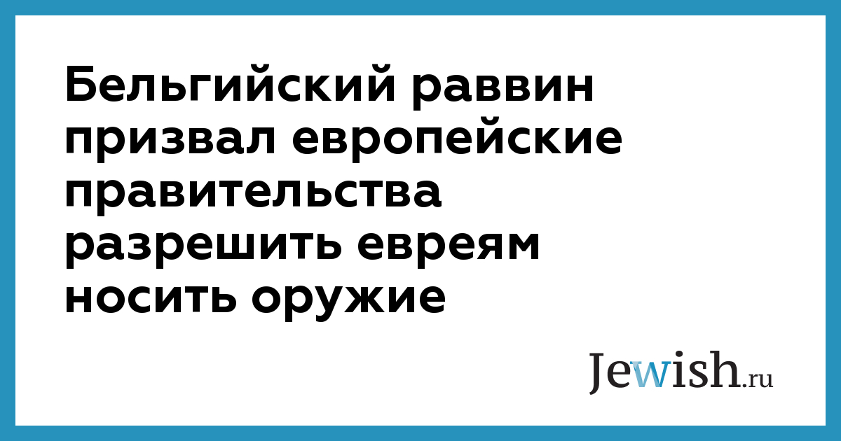 Бельгийский раввин призвал европейские правительства разрешить евреям носить оружие