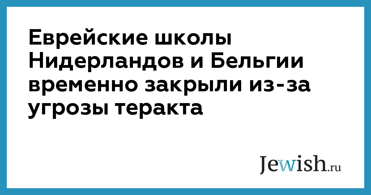 Еврейские школы Амстердама, Антверпена и Брюсселя временно закрыли из-за угрозы теракта в Бельгии. По словам Изи Морселя, главы бельгийской «Йесодей ха-Тора», школы закрыты до дальнейшего распоряжения властей. «Нас проинформировали, что мы — потенциальная цель. — заявил Морсель местному изданию Joods Actueel. — Мы не хотим рисковать. Мы верим в то, что полиция и муниципалитет сделают все возможное, чтобы школы открылись в понедельник».
