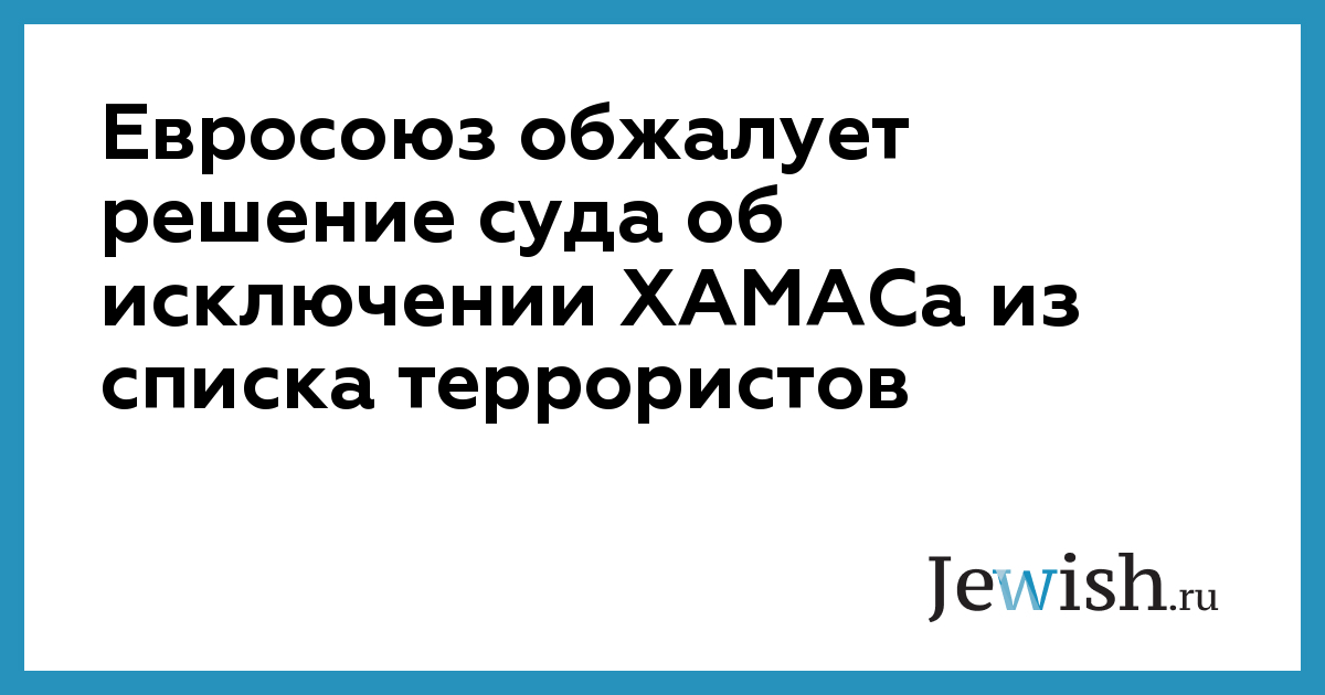 В понедельник, 19 января, Совет Евросоюза постановил подать апелляцию на решение Европейского суда, исключающее ХАМАС из списка террористических организаций. Об этом сегодня