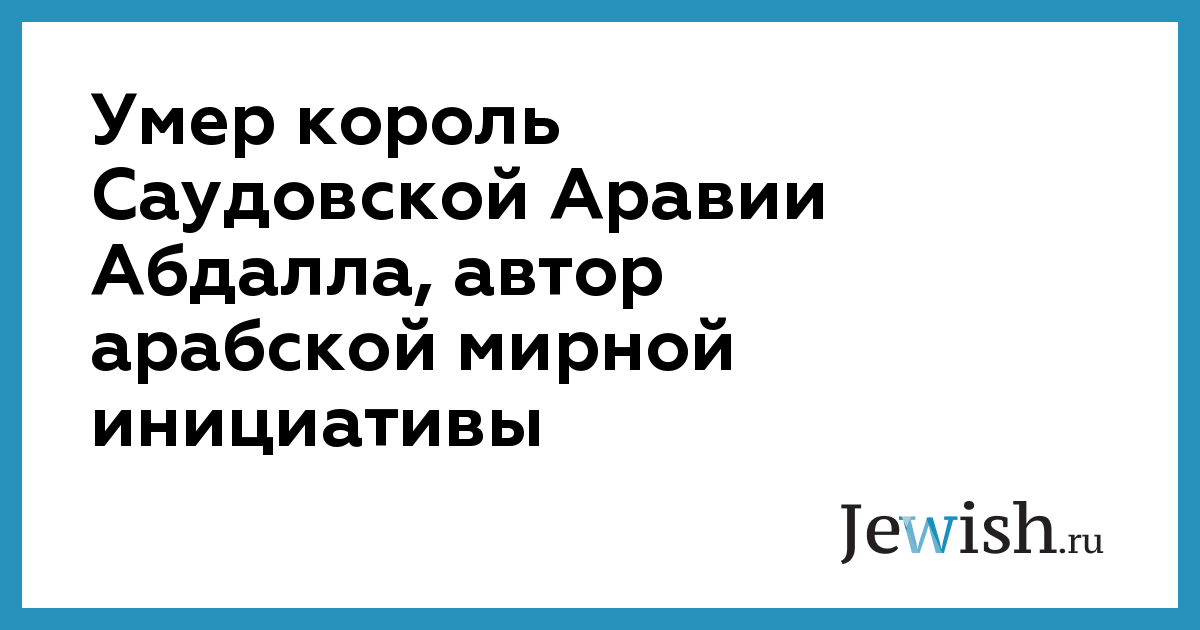 Умер король Саудовской Аравии Абдалла, автор арабской мирной инициативы