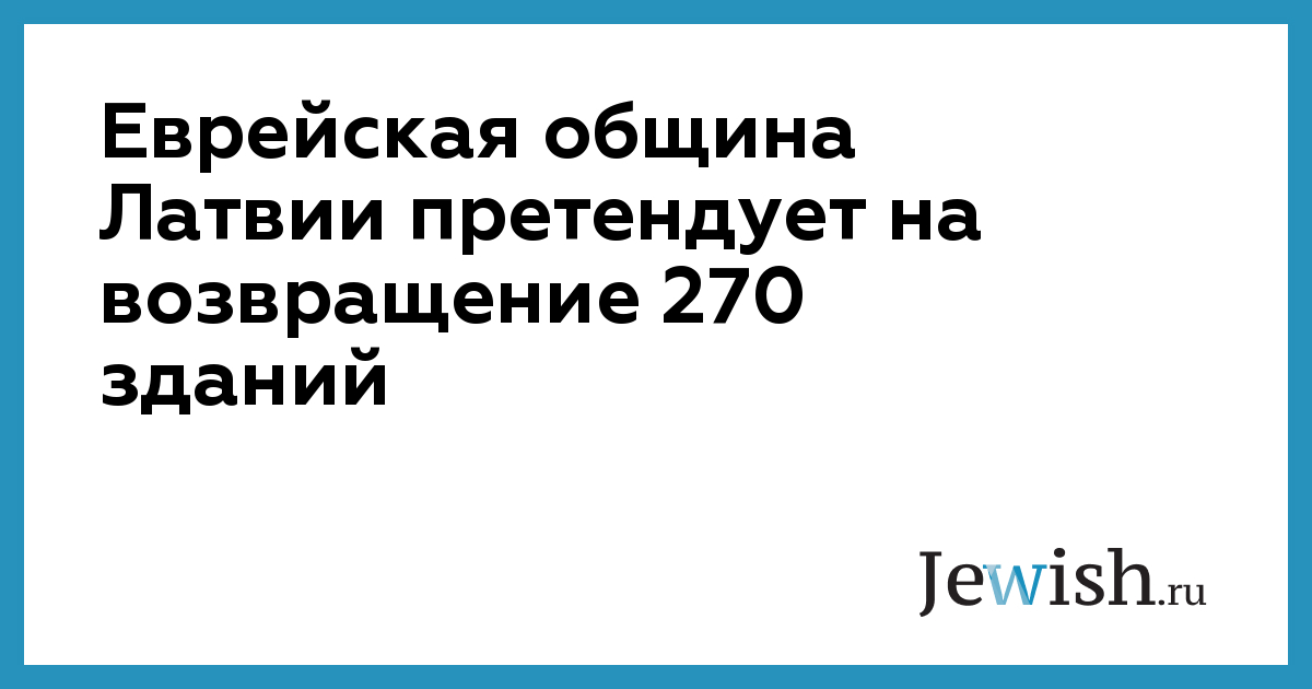 Еврейская община Латвии имеет право на 270 зданий, конфискованных у нее во время Холокоста, заявил член правления Совета еврейских общин Латвии Дмитрий Крупников. Однако, по словам представителя еврейской организации, не все эти дома действительно требуется возвращать. Как сообщил Крупников в интервью телеканалу TV24 Rīga, в частности, община не претендует на здание в Кулдиге, так как в этом самоуправлении нет еврейской жизни. Также еврейские организации не требуют возвращения дома в Лиепае, где сейчас действует музыкальная школа. Тем не менее община надеется получить за это здание компенсацию в размере его кадастровой стоимости.