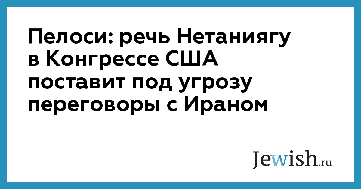 Лидер Демократической партии в Конгрессе США Нэнси Пелоси сообщила в среду, 28 января, что назначенное на март выступление Биньямина Нетаниягу перед конгрессменами может поставить под угрозу переговоры с Ираном о ядерной программе. По словам Пелоси, она предупредила премьер-министра Израиля о своих опасениях во время телефонных переговоров на этой неделе.