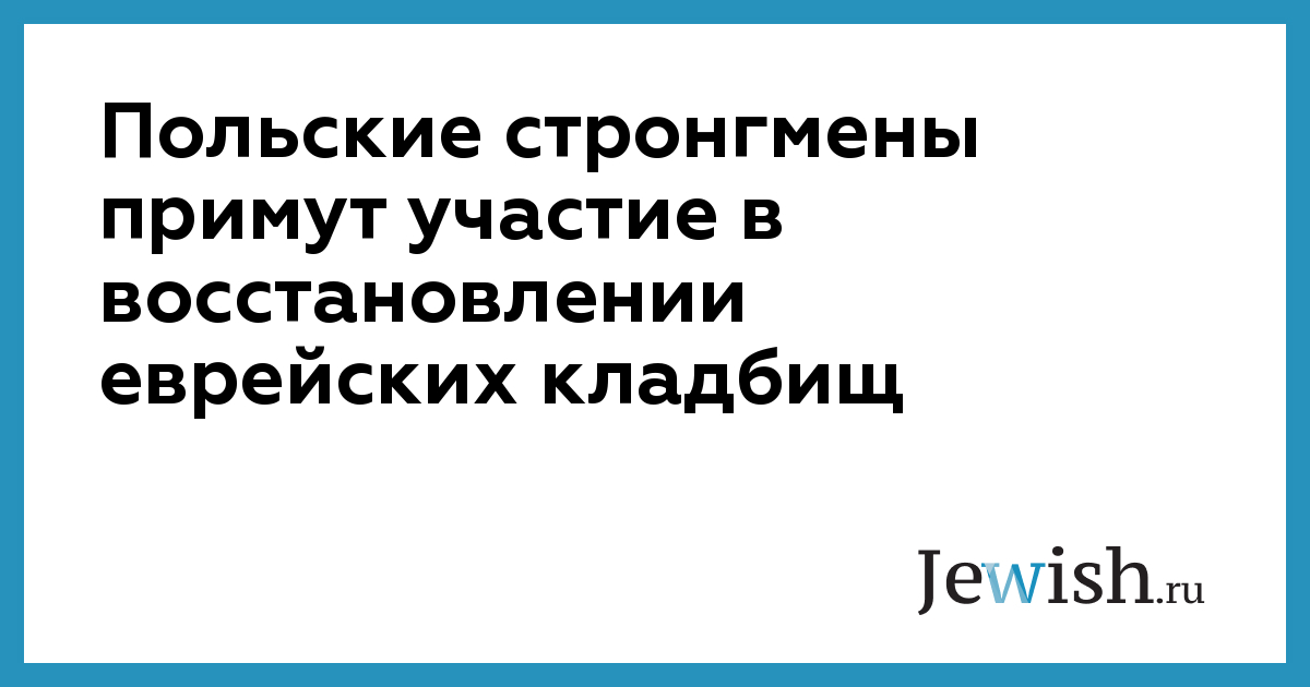 Польская федерация стронгменов (спортсменов, занимающихся силовым экстримом) займется восстановлением еврейских кладбищ совместно с израильской организацией From the Depth. Польские стронгмены будут помогать волонтерам From the Depth переносить еврейские надгробия из труднодоступных мест в специально организованные хранилища. Речь идет о памятниках с разрушенных кладбищ, которые на протяжении десятилетий использовались в качестве строительного материала или для мощения мостовых. В настоящее время волонтеры From the Depth занимаются поиском этих надгробий по всей территории Польши.
