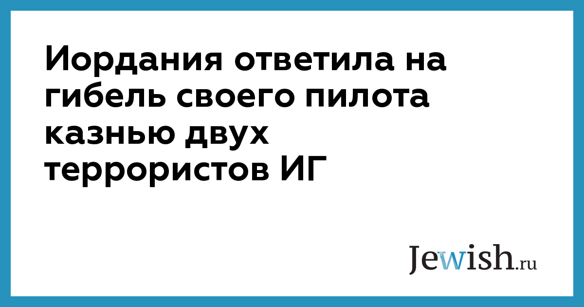 Утром в среду, 4 февраля, власти Иордании казнили двух террористов, связанных с группировкой «Исламское государство». Повешение Саджиры ар-Ришауи и Зияда аль-Карбули стало ответом на казнь боевиками ИГ пилота иорданских ВВС Муаза аль-Касасбеха. Фотографии показательного сожжения заживо иорданского летчика были опубликованы террористами в интернете накануне во вторник. Предполагается, что казнь могла быть произведена еще в начале января, сообщает