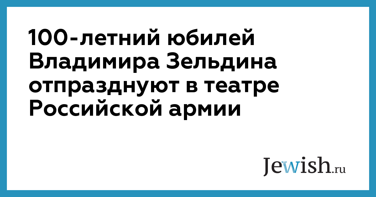 В честь юбилея Владимира Зельдина в театре Российской армии подготовлена специальная программа, включающая творческие встречи с артистом, спектакли с его участием и кульминационный юбилейный вечер. Владимир Зельдин на протяжении более 70 лет входит в труппу этого театра.